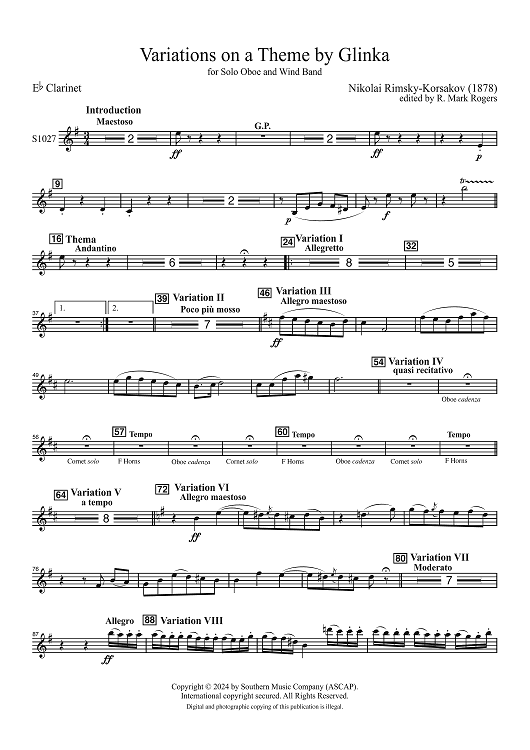 "Variations on a Theme by Glinka for Solo Oboe and Wind Band - Eb Clarinet" Sheet Music by Nikolai Rimsky-Korsakov