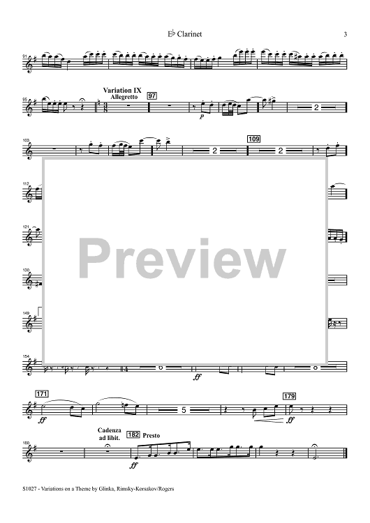 Digital Sheet Music for Variations on a Theme by Glinka for Solo Oboe and Wind Band - Eb Clarinet by Nikolai Rimsky-Korsakov, R. Mark Rogers scored for Concert Band; id:506447