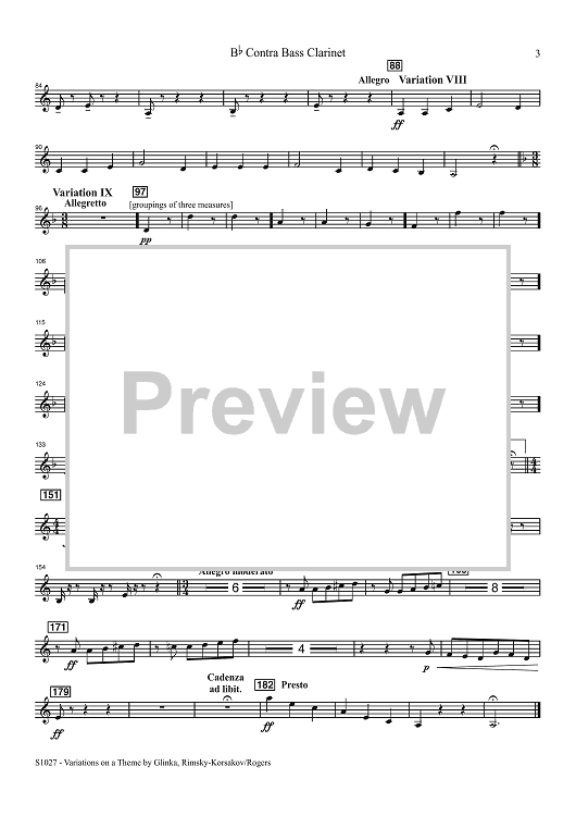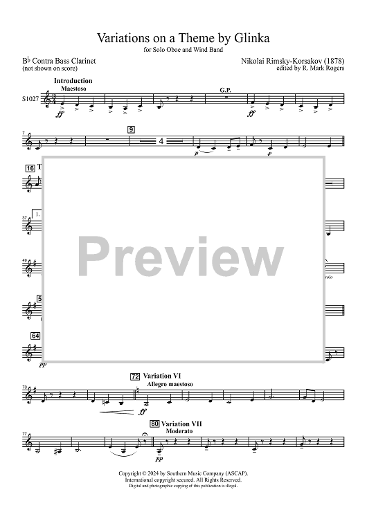 Digital Sheet Music for Variations on a Theme by Glinka for Solo Oboe and Wind Band - Eb Contra Alto Clarinet / Bb Contra Bass Clarinet by Nikolai Rimsky-Korsakov, R. Mark Rogers scored for Concert Band; id:506454