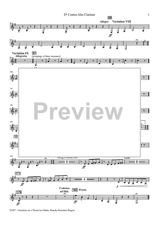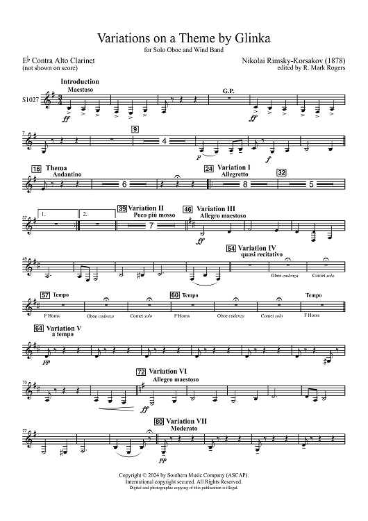 "Variations on a Theme by Glinka for Solo Oboe and Wind Band - Eb Contra Alto Clarinet / Bb Contra Bass Clarinet" Sheet Music by Nikolai Rimsky-Korsakov