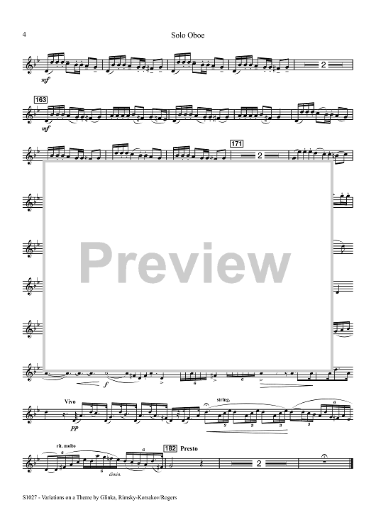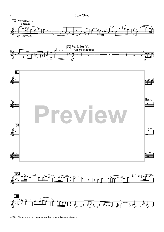 Digital Sheet Music for Variations on a Theme by Glinka for Solo Oboe and Wind Band - Solo Oboe by Nikolai Rimsky-Korsakov, R. Mark Rogers scored for Concert Band; id:506442