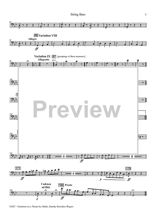 "Variations on a Theme by Glinka for Solo Oboe and Wind Band - String Bass" Sheet Music by Nikolai Rimsky-Korsakov