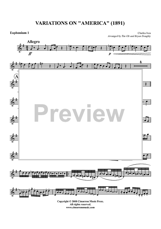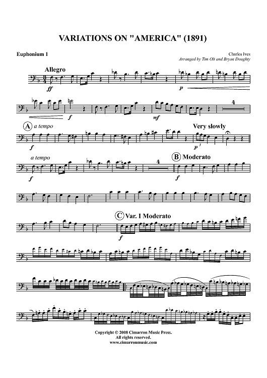 "Variations on "America" (1891) - Euphonium 1 BC/TC" Sheet Music by Charles Ives