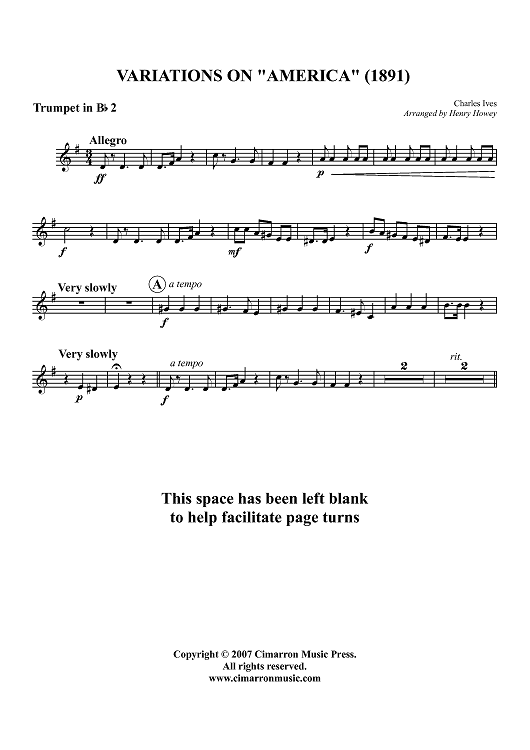 "Variations on "America" - Trumpet 2 in B-flat" Sheet Music by Charles Ives