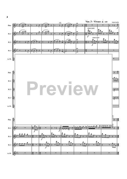 Digital Sheet Music for Variations on An American Hymntune - Score by , Paul Morgan scored for Flute Ensemble; id:356199