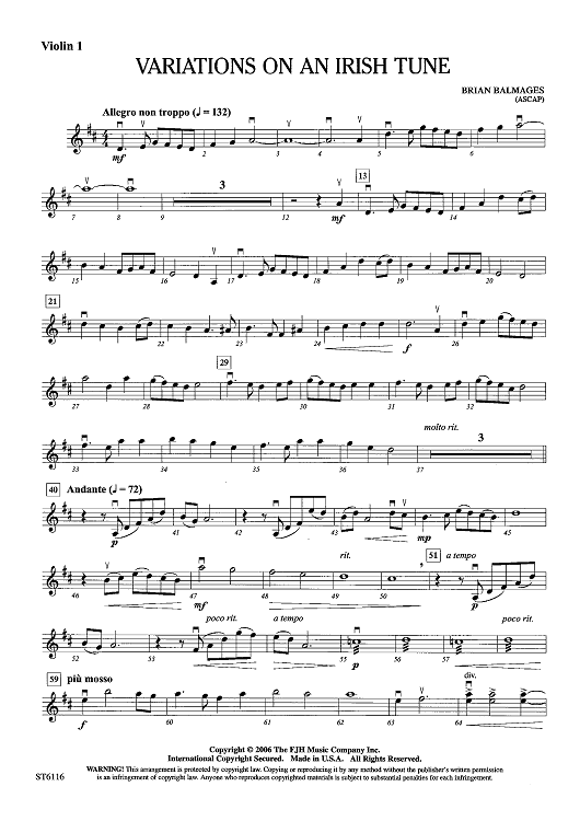 "Variations on an Irish Tune - Violin 1" Sheet Music by Brian Balmages