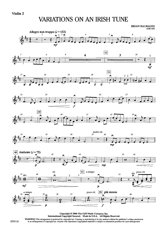 "Variations on an Irish Tune - Violin 2" Sheet Music by Brian Balmages