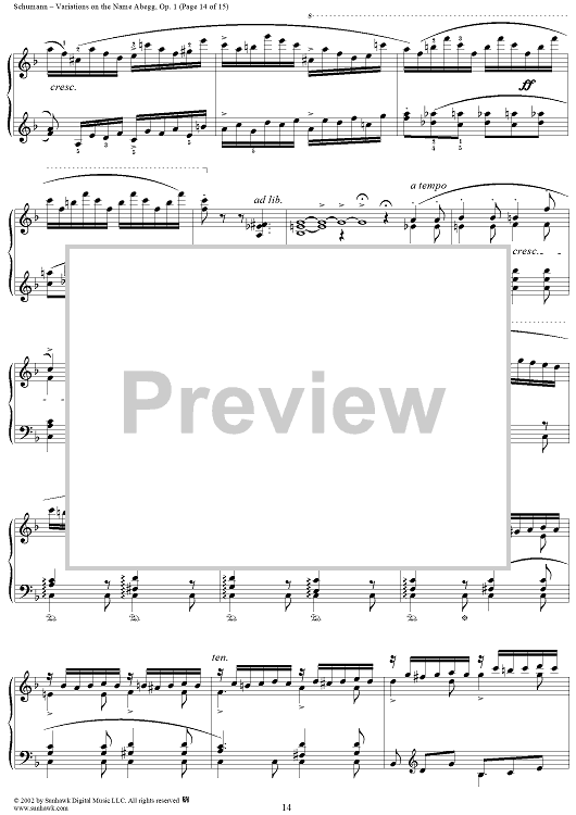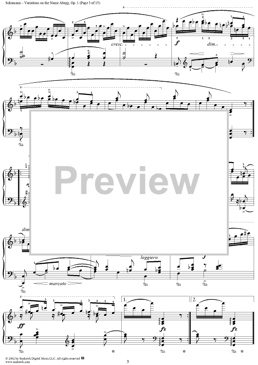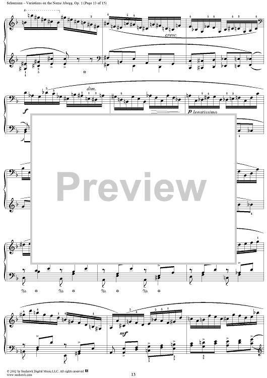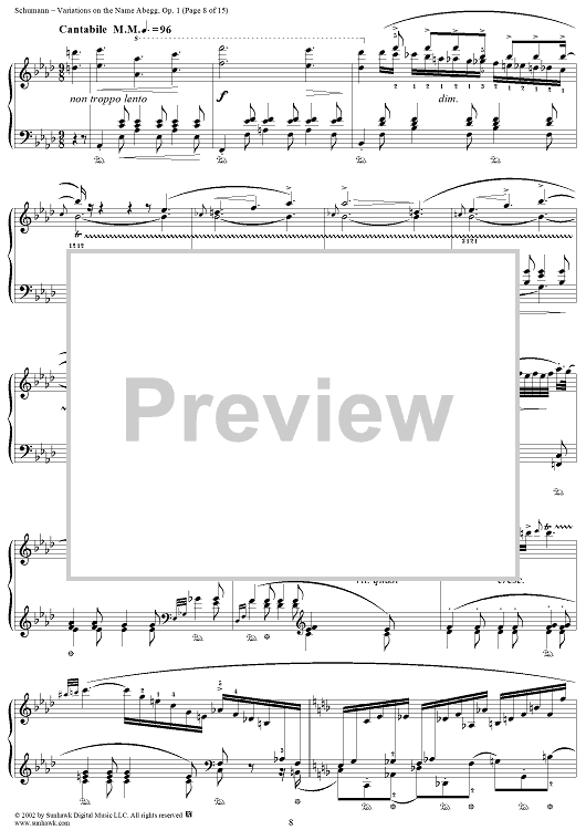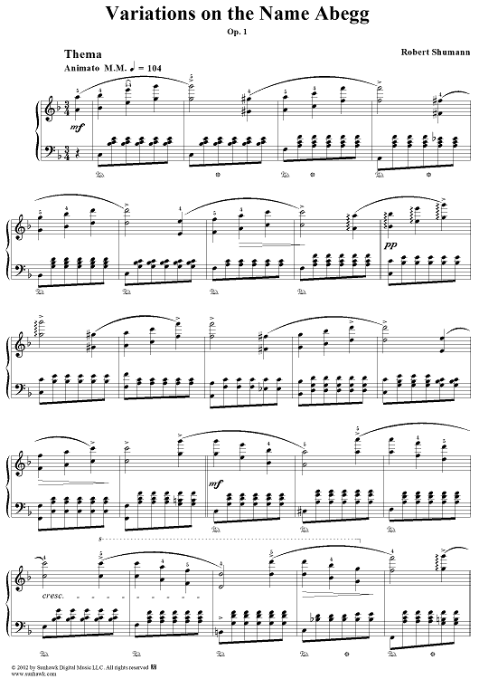 Digital Sheet Music for Variations on the Name "Abegg", Op. 1 by Robert Schumann scored for Piano Solo; id:258632