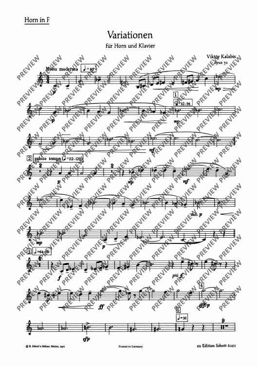 Digital Sheet Music for Variations by Viktor Kalabis scored for Horn And Piano; id:484026