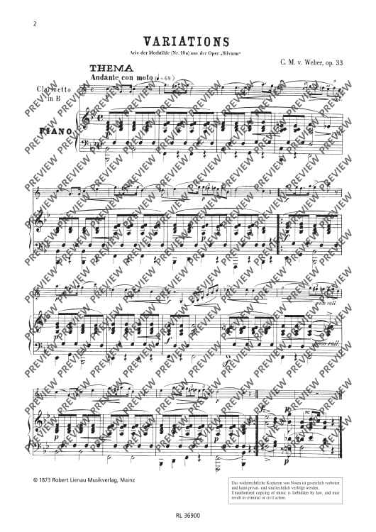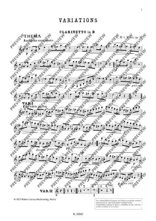 Digital Sheet Music for Variations by Carl Maria Von Weber scored for Clarinet And Piano; id:496654