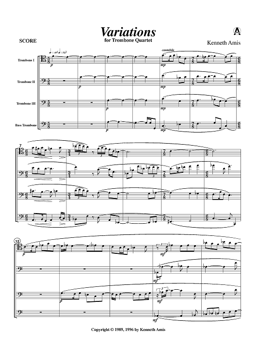 Digital Sheet Music for Variations - Score by Kenneth Amis scored for Trombone Quartet; id:365990