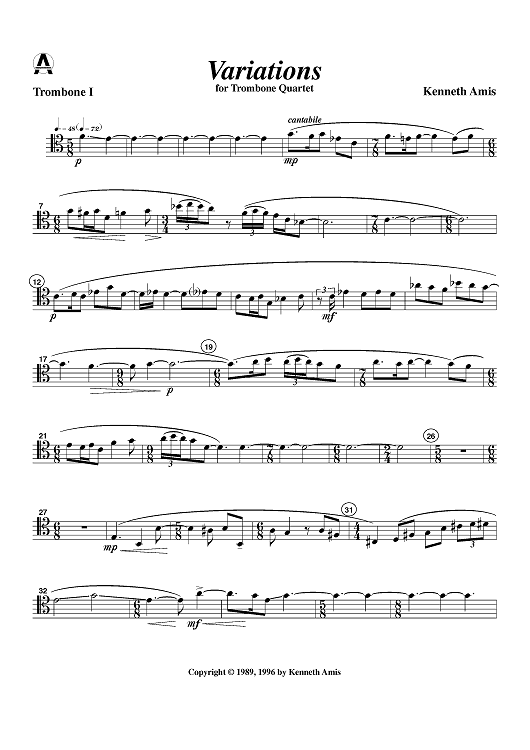 "Variations - Trombone 1" Sheet Music by Kenneth Amis