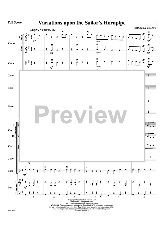 Digital Sheet Music for Variations upon the Sailor's Hornpipe - Score by Virginia Croft scored for Orchestra; id:408399