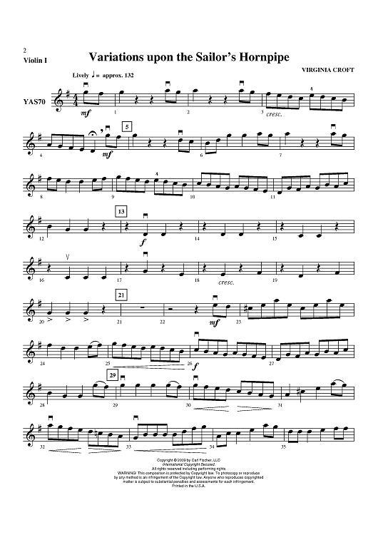 "Variations upon the Sailor's Hornpipe - Violin 1" Sheet Music by Virginia Croft