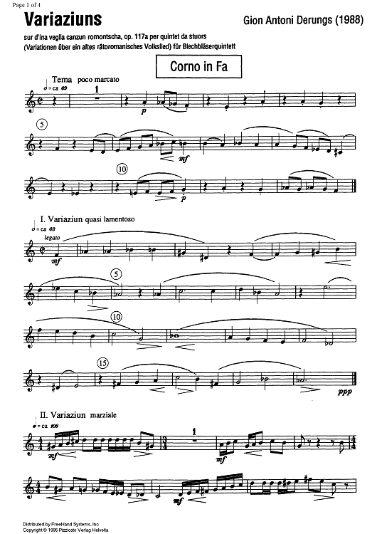 Digital Sheet Music for Variaziuns - Horn in F by , Gion Derungs scored for Brass Quintet; id:330806