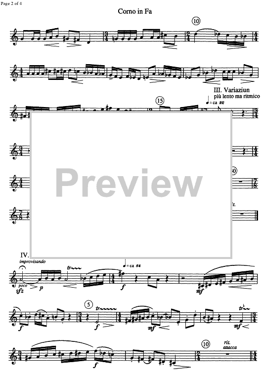 "Variaziuns - Horn in F" Sheet Music by Gion Derungs