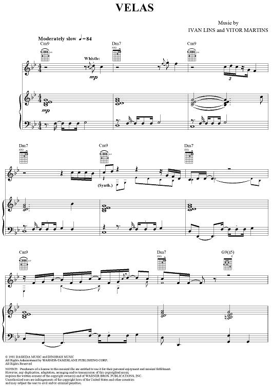 Digital Sheet Music for Velas by Ivan Lins, Vitor Martins scored for C Instrument/Piano; id:251094