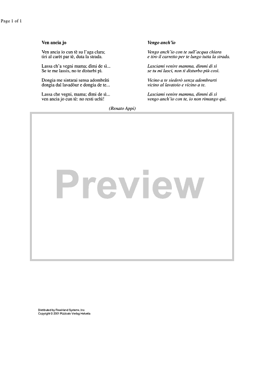 "Ven ancja jò - Lyrics" Sheet Music by Davide Liani
