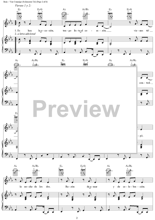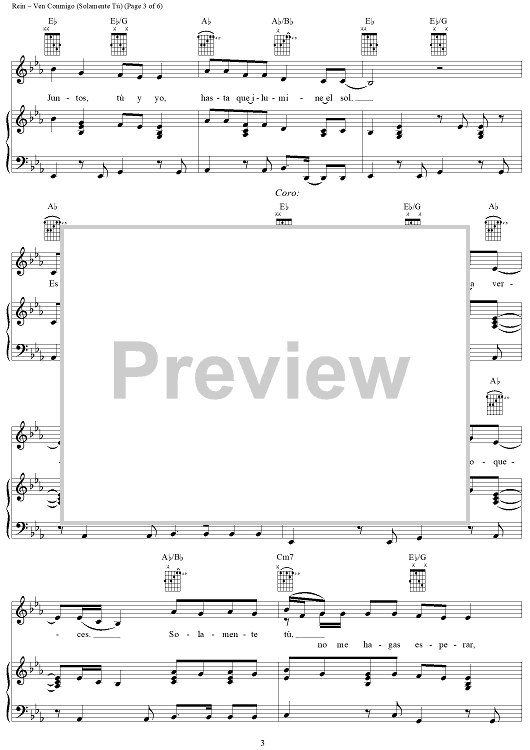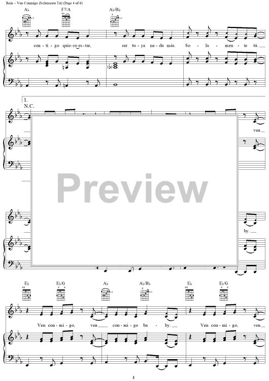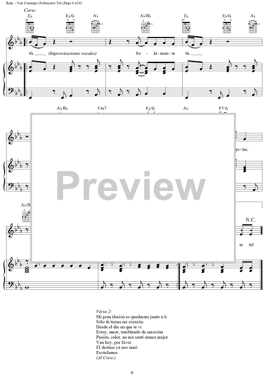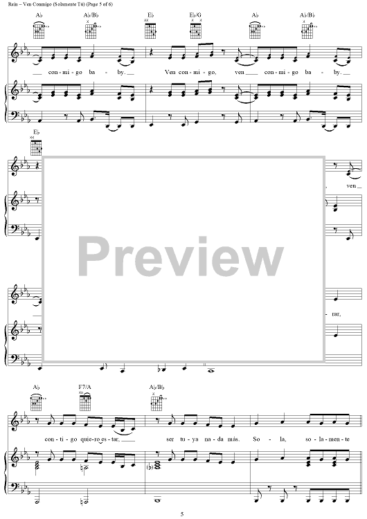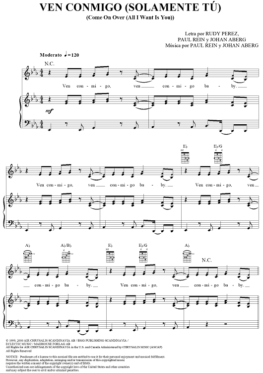Digital Sheet Music for Ven Conmigo (Solamente Tú) by Paul Rein, Johan Aberg, Rudy Perez, Christina Aguilera scored for Piano/Vocal/Chords; id:285436