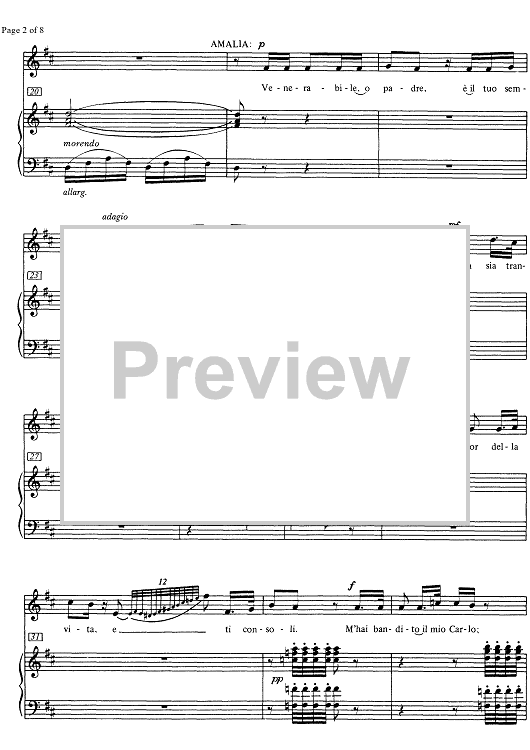 Digital Sheet Music for Venerabile, o padre - Lo sguardo avea degli angeli from I Masnadieri by Giuseppe Verdi scored for Soprano/Piano; id:332327