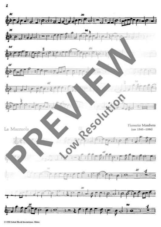 In his dedication of 20th June 1608 to Count Scripo Nascica Fantagucci, the printer alessandro Rauerij emphasized that his collection contains some of the most outstanding works by the most modern and prominent musicians, and we do in fact find names such as Giovanni Gabrieli and Girolamo Frescobaldi, and also the other masters we have reprinted were famous far beyound their day. Accidentals above the notes are editor's suggestions. In the parts, the tenor has been printed three times: in the alto, the octave treble and the normal treble clef. The canzonas can be played on any instruments, and consorts of fiddles, viols, recorders, as well as lutes and guitars are especially suitable.