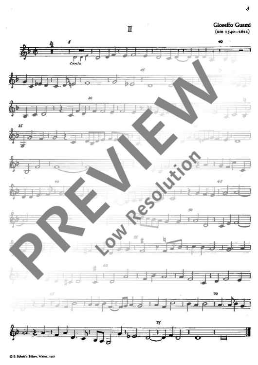 In his dedication of 20th June 1608 to Count Scripo Nascica Fantagucci, the printer alessandro Rauerij emphasized that his collection contains some of the most outstanding works by the most modern and prominent musicians, and we do in fact find names such as Giovanni Gabrieli and Girolamo Frescobaldi, and also the other masters we have reprinted were famous far beyound their day. Accidentals above the notes are editor's suggestions. In the parts, the tenor has been printed three times: in the alto, the octave treble and the normal treble clef. The canzonas can be played on any instruments, and consorts of fiddles, viols, recorders, as well as lutes and guitars are especially suitable.