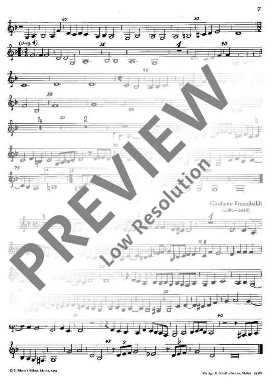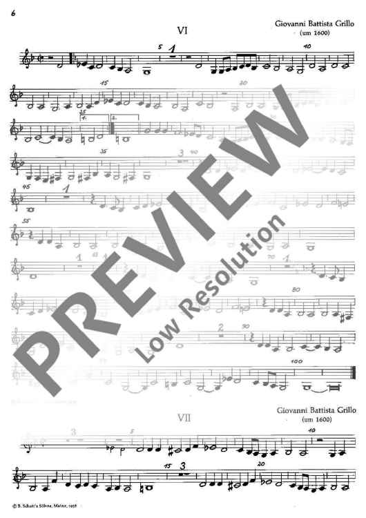 In his dedication of 20th June 1608 to Count Scripo Nascica Fantagucci, the printer alessandro Rauerij emphasized that his collection contains some of the most outstanding works by the most modern and prominent musicians, and we do in fact find names such as Giovanni Gabrieli and Girolamo Frescobaldi, and also the other masters we have reprinted were famous far beyound their day. Accidentals above the notes are editor's suggestions. In the parts, the tenor has been printed three times: in the alto, the octave treble and the normal treble clef. The canzonas can be played on any instruments, and consorts of fiddles, viols, recorders, as well as lutes and guitars are especially suitable.
