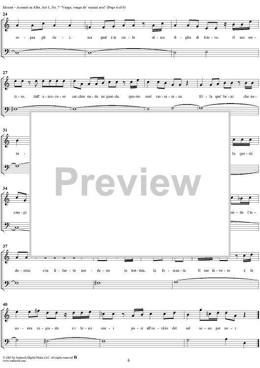 Digital Sheet Music for "Venga, venga de' sommi eroi", No. 7 from "Ascanio in Alba", Act 1, K111 - Full Score by Wolfgang Amadeus Mozart scored for Voice and Orchestra; id:292016