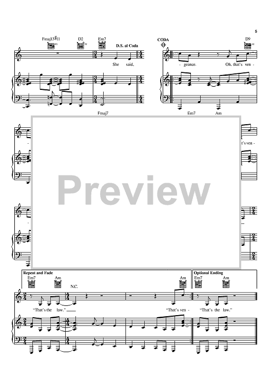 Digital Sheet Music for Vengeance by Carly Simon scored for Piano/Vocal/Chords; id:371710