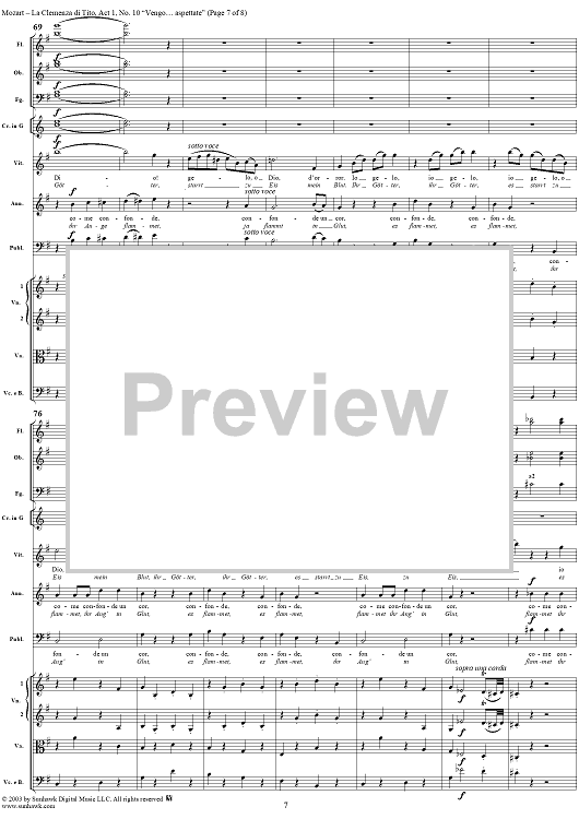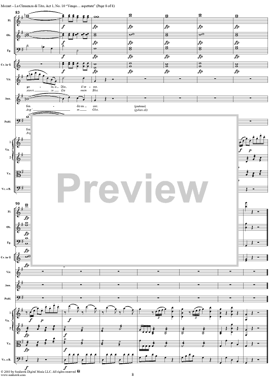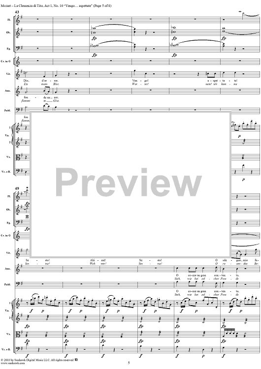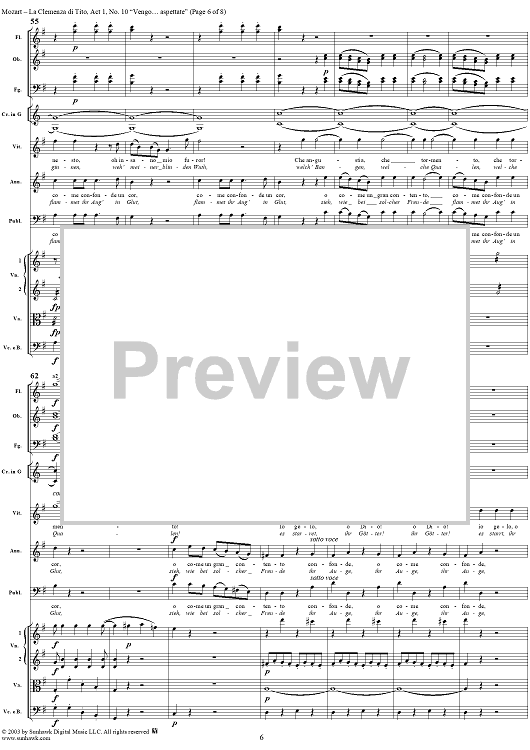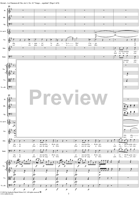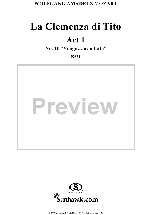 Digital Sheet Music for "Vengo … aspettate", No. 10 from "La Clemenza di Tito", Act 1 (K621) - Full Score by Wolfgang Amadeus Mozart scored for Voice and Orchestra; id:291604