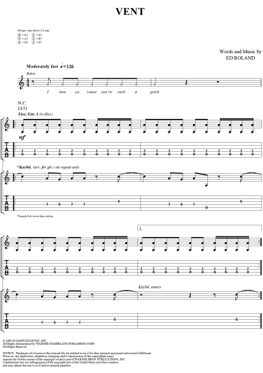 Digital Sheet Music for Vent by Collective Soul, Ed Roland scored for Guitar Tab/Vocal; id:286837