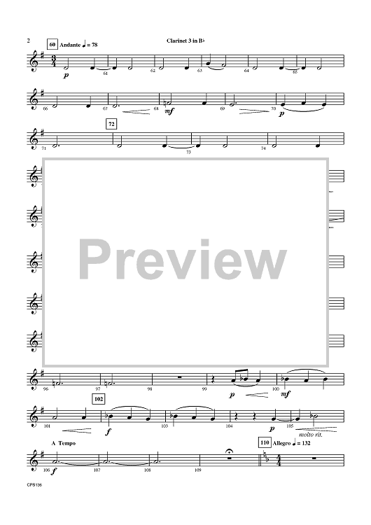 Digital Sheet Music for Venture - Clarinet 3 in Bb by Sean O'Loughlin scored for Concert Band; id:430876