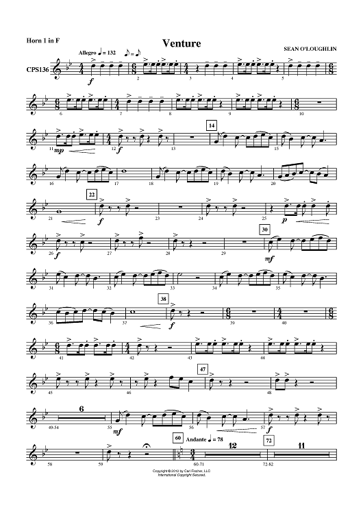 "Venture - Horn 1 in F" Sheet Music by Sean O'Loughlin
