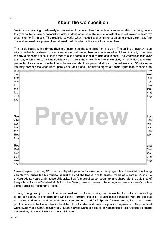 Digital Sheet Music for Venture - Score by Sean O'Loughlin scored for Concert Band; id:430870