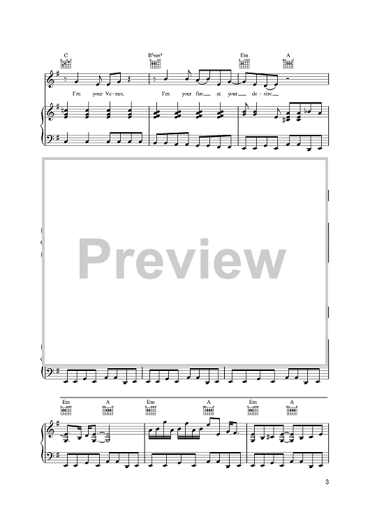 Digital Sheet Music for Venus by Bananarama, Robert Van Leeuwen, Shocking Blue scored for Piano/Vocal/Chords; id:397674