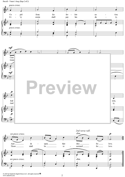 Digital Sheet Music for Venus's Song by Henry Purcell scored for Voice/Piano; id:303513