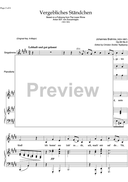 "Vergebliches Ständchen Op.84 No. 4" Sheet Music by Johannes Brahms