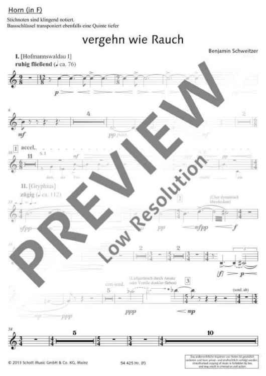 "vergehn wie Rauch - Set of Parts" Sheet Music by Benjamin Schweitzer