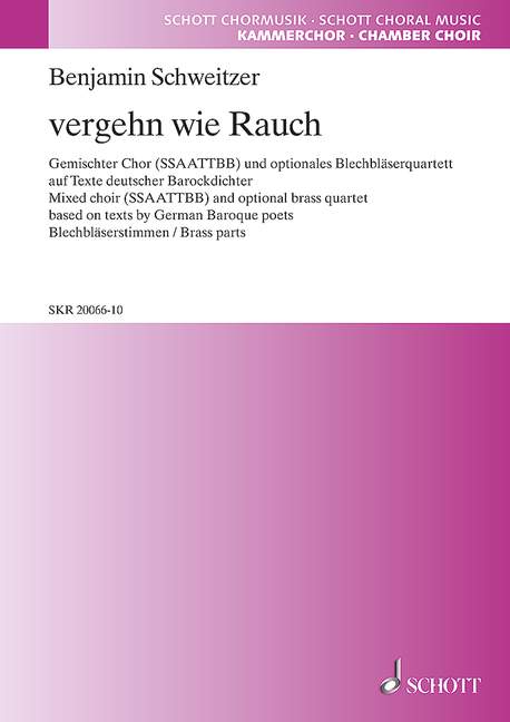 Digital Sheet Music for vergehn wie Rauch - Set of Parts by Benjamin Schweitzer scored for Mixed Choir (ssaattbb), Trumpet In Bb, Horn In F, Trombone And Tuba; id:483547