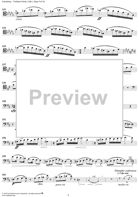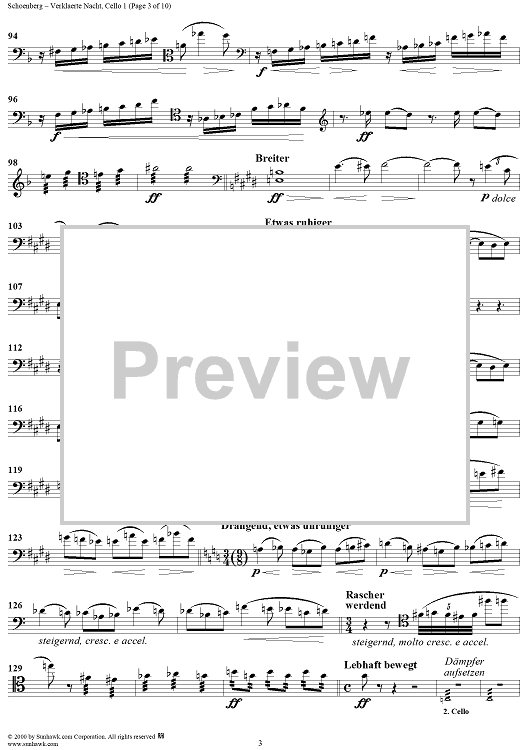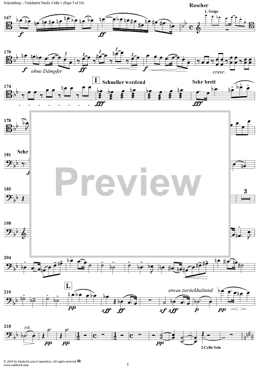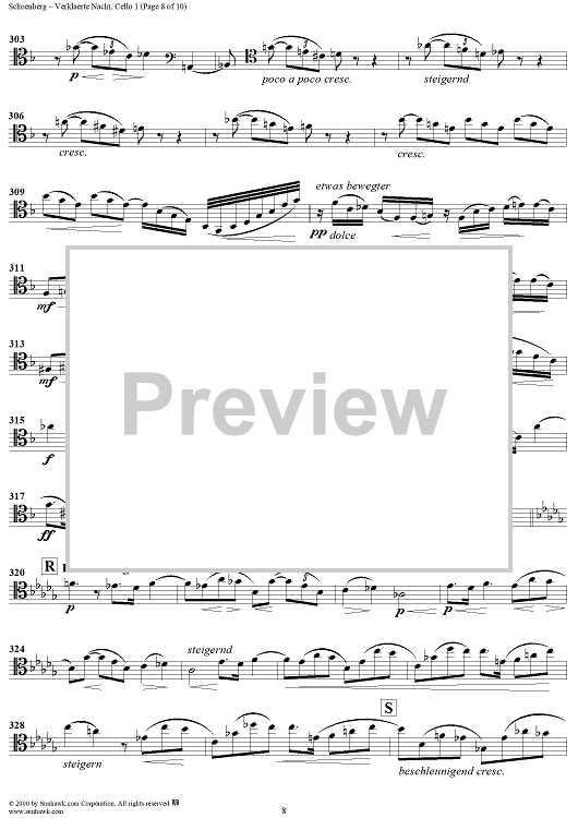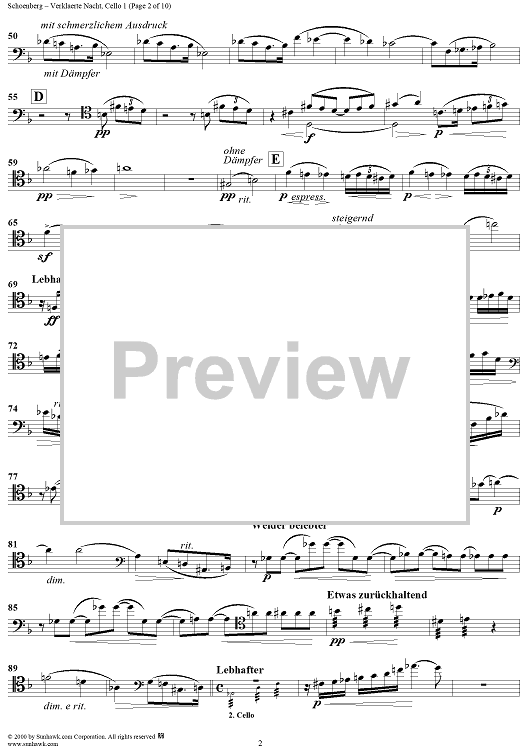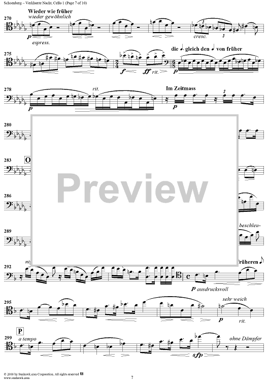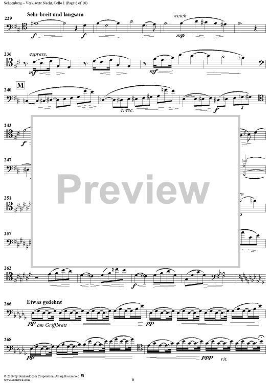 Digital Sheet Music for Verklaerte Nacht, Op. 4 - Cello 1 by Arnold Schoenberg scored for String Sextet; id:176690