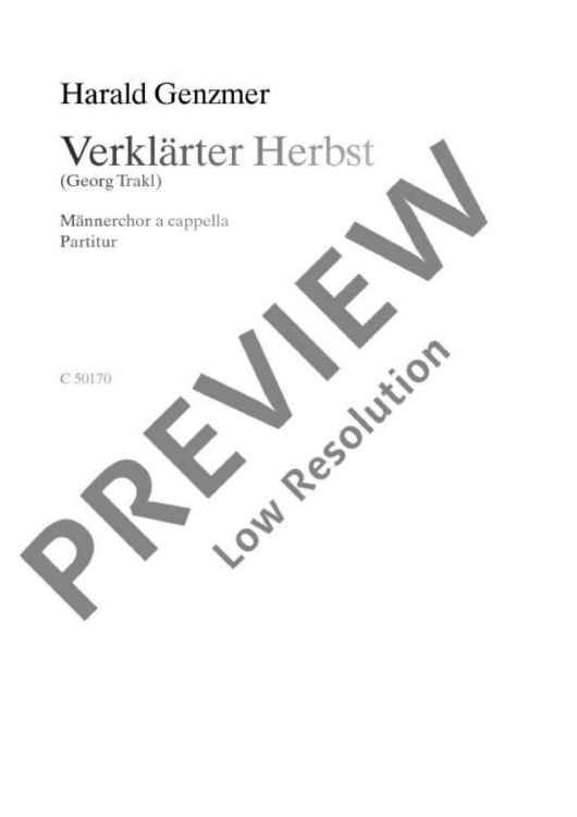 Digital Sheet Music for Verklärter Herbst - Choral Score by Harald Genzmer scored for Men's Choir (ttbb); id:471841