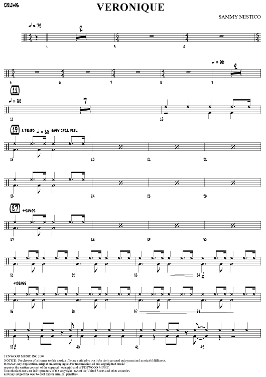"Veronique - Drums" Sheet Music by Sammy Nestico