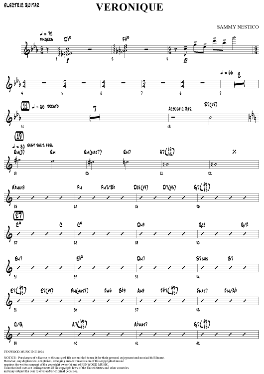 "Veronique - Electric Guitar" Sheet Music by Sammy Nestico