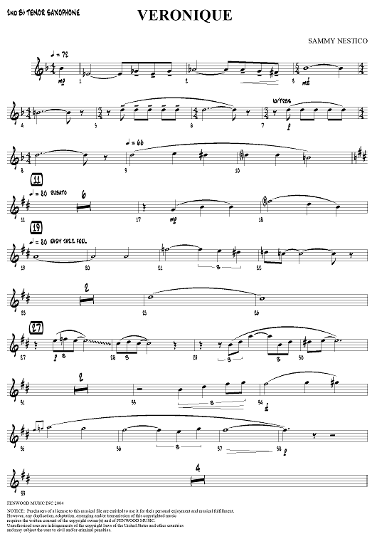 "Veronique - Tenor Saxophone 2" Sheet Music by Sammy Nestico