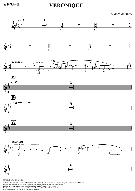 "Veronique - Trumpet 4" Sheet Music by Sammy Nestico