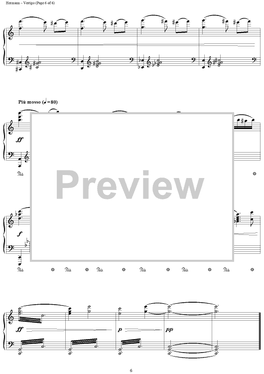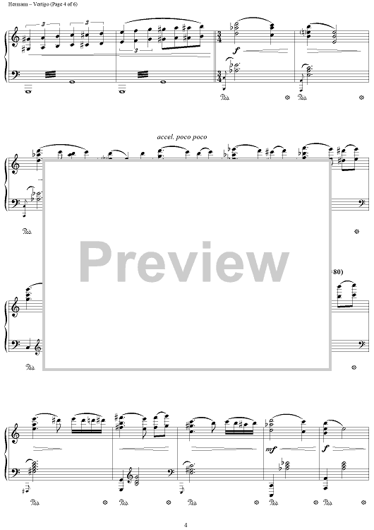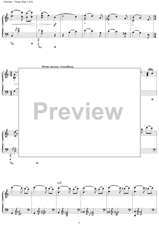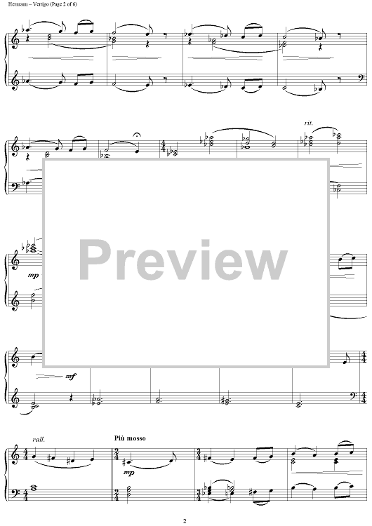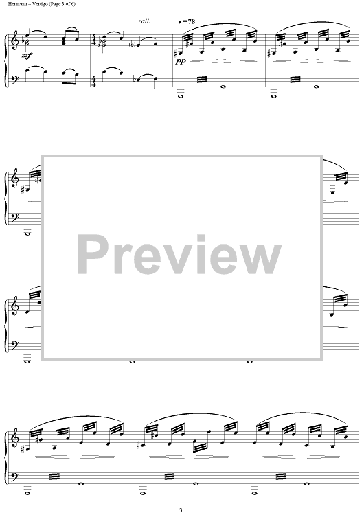 Digital Sheet Music for Vertigo (Scene d'Amour) by Bernard Herrmann scored for Piano Solo; id:456366