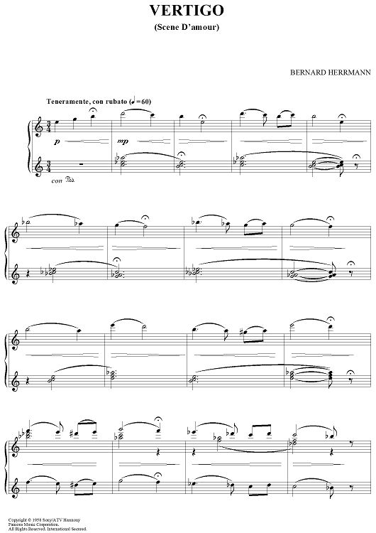 "Vertigo (Scene d'Amour)" Sheet Music by Bernard Herrmann