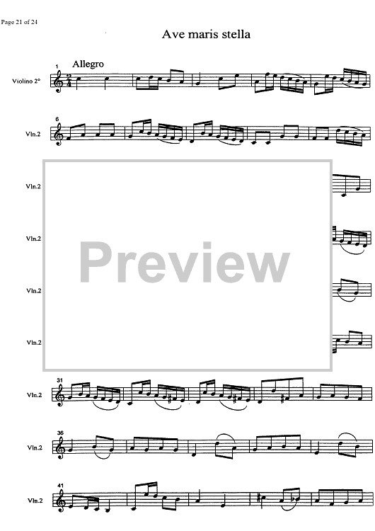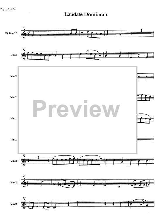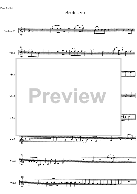 Digital Sheet Music for Vespers of S. Ignacio - Violin 2 by , Domenico Zipoli scored for Choir/2 Violins/Continuo; id:329368