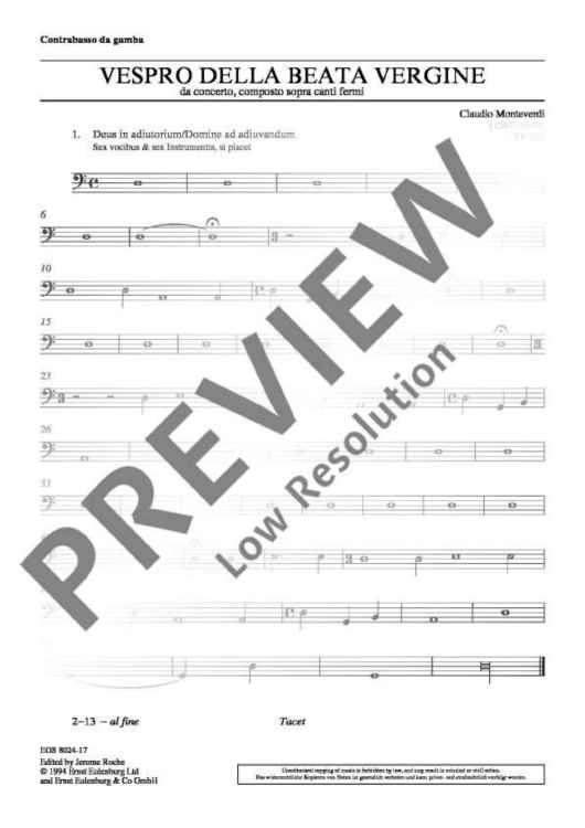 "Vespro della Beata Vergine - Contrabasso Da Gamba" Sheet Music by Claudio Monteverdi
