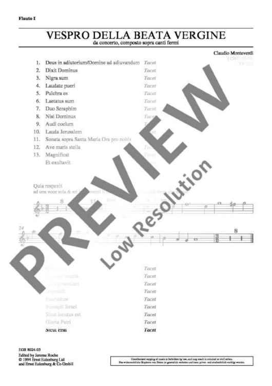 "Vespro della Beata Vergine - Flauto I" Sheet Music by Claudio Monteverdi